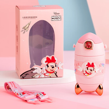 迪士尼儿童水杯 宝宝便携火箭真空保温吸管杯 米妮300ML
