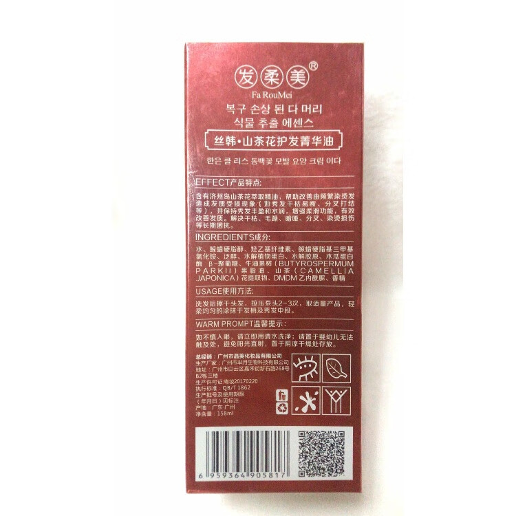 发柔美发柔美丝韩山茶花护发菁华油香水精油免洗护发柔顺光泽补水保湿乳
