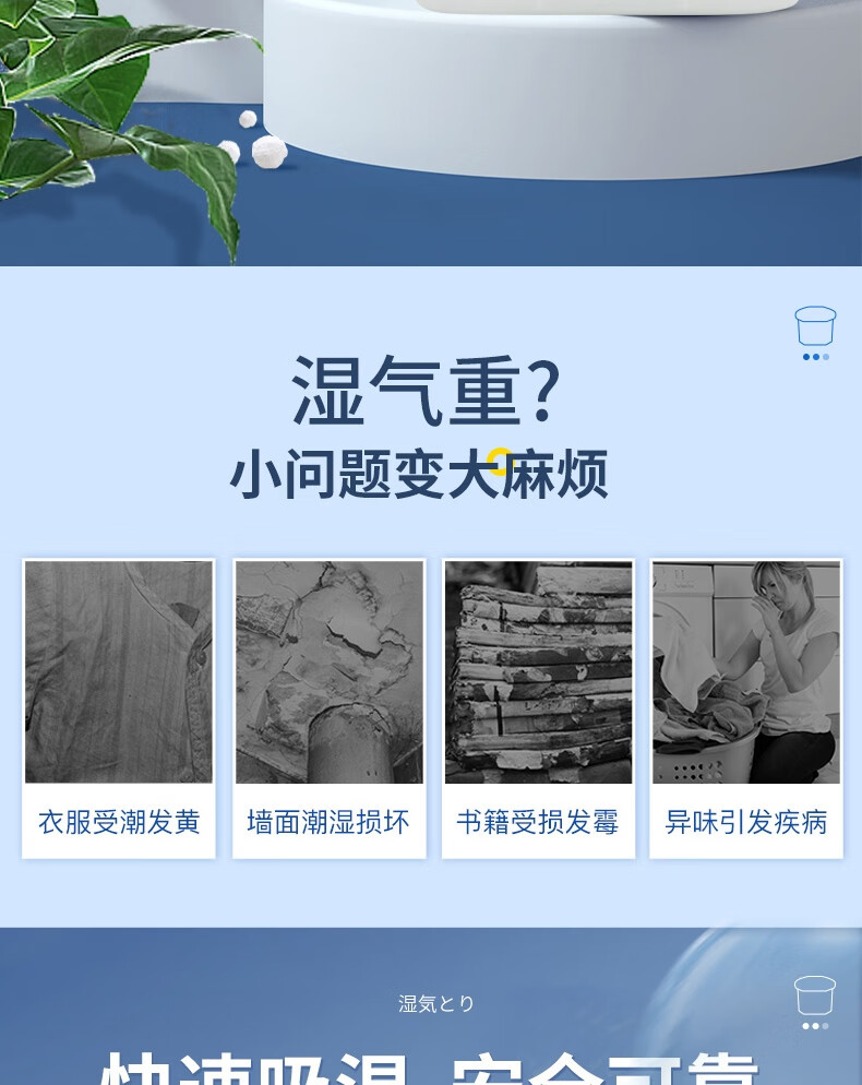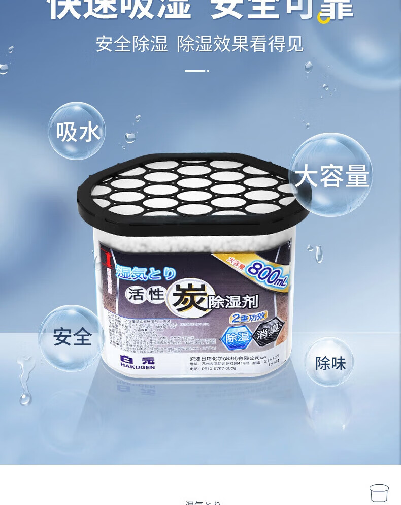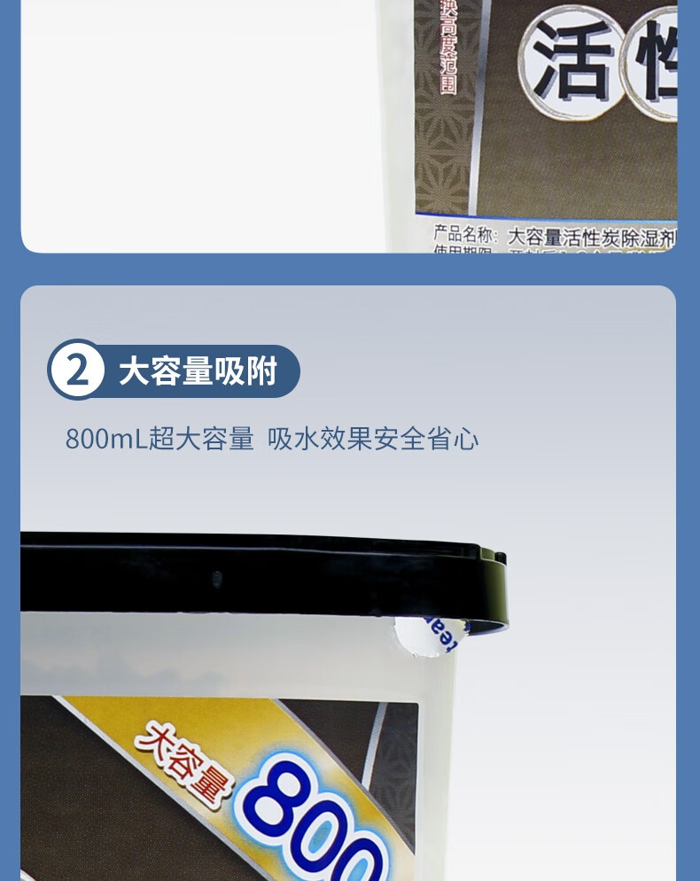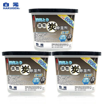 白元大容量除湿盒800ml*3盒活性炭消臭味防霉高效吸水除湿剂