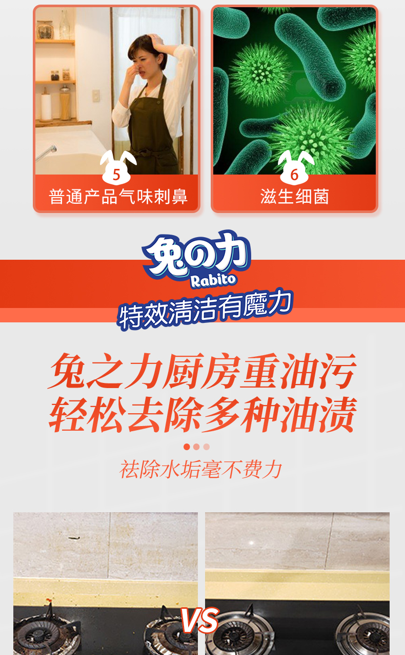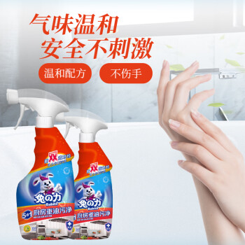 兔の力油污清洁剂 500g 5合1厨房重油污净 油烟机灶台去油污清洁剂 500g 2瓶 瓷砖清洁剂*1瓶