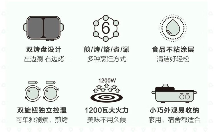小熊涮烤一体锅烤肉盘家用多功能电烤盘涮烤电烤炉 绿色 DKL-C12J5
